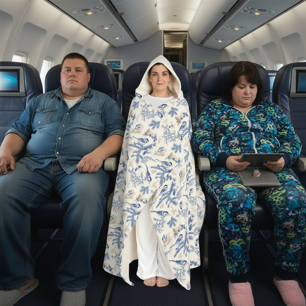 travel-- perfect for slow coffee, reading by the window, or stargazing from the porch. The generous hood cradles your head while the wide, draping body moves with you, so you stay warm without feeling bulky. The subtle coastal botanical motif brings a quiet, natural touch to a living room, camper, or bedside at twilight.