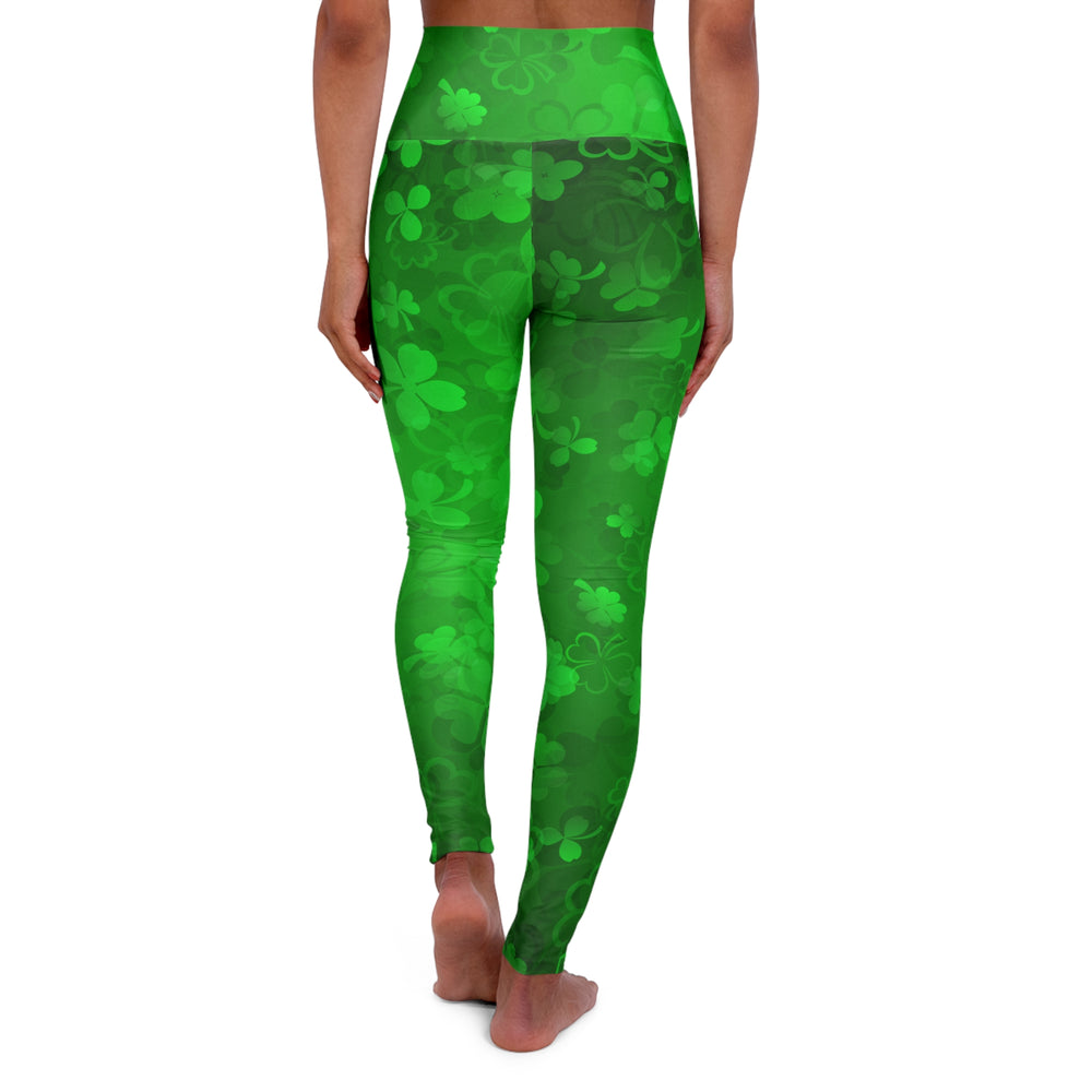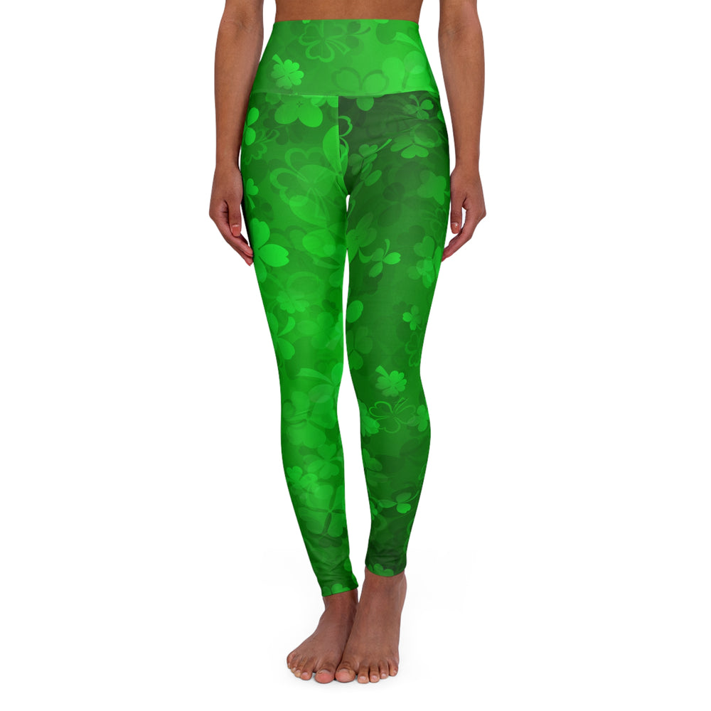 Slip into these high-rise yoga leggings and let the forest-green clover pattern become part of your movement. The double-layer waistband sits snug at the natural waist, offering a streamlined silhouette whether you’re flowing through sun salutations or running errands after class. The all-over print blends soft, overlapping shamrocks and organic shapes for a playful, slightly whimsical look that still reads polished in motion. Breathable, quick-drying fabric and four-way stretch follow your every bend, while skinny fit lines keep the design sleek from hip to ankle. Wear them on a morning mat, a festival walk, or when you want a touch of verdant energy in your day.
